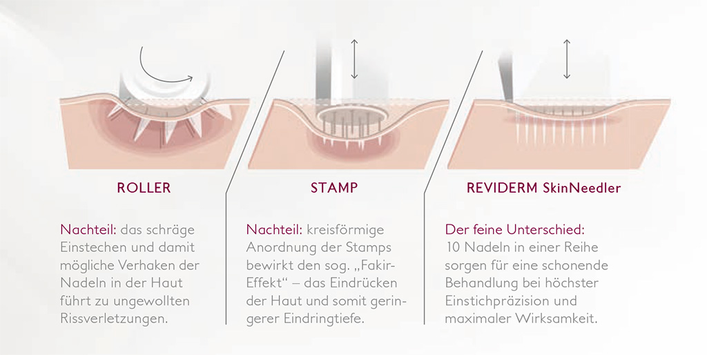 Micro-Needling gilt seit gut einem Jahrzehnt als GEHEIMTIPP unter den ANTI-AGING METHODEN zur Behandlung ästhetischer Haut- probleme. Es gibt eine Vielzahl von Micro-Needling Geräten, die Wirkung zeigen – allerdings auch Nachteile mit sich bringen. Erst REVIDERM hat aus diesem Trend eine bewährte Methode entwickelt.